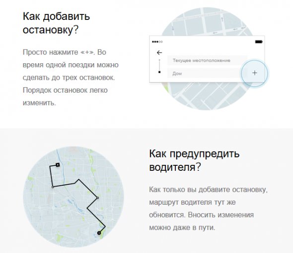 Во время одной поездки можно сделать до трех остановок, а их порядок можно изменить даже во время поездки.