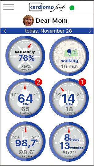 Устройство Cardiomo измеряет сердечный ритм, температуру тела, следит за пульсом и дыханием, а также делает кардиограмму. Вы можете следить за здоровьем близких на расстоянии. Устройство мгновенно будет извещать об ухудшении здоровья и даже когда владелец упадет в обморок.