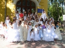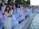 Некоторые из девушек уже принимали участие в прошлогоднем параде невест. А некоторые из них принимали участие впервые. Участници парада были разделены на несколько групп. В первую входили дети. Кстати, наименьшей участницей парада этого года стала трехлетняя Алинка. Она принимала участие в мероприятии вместе с мамой Викторией Яременко.