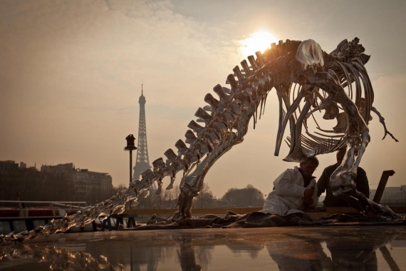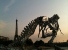 Возле Эйфелевой башни установили алюминиевый скелет динозавра