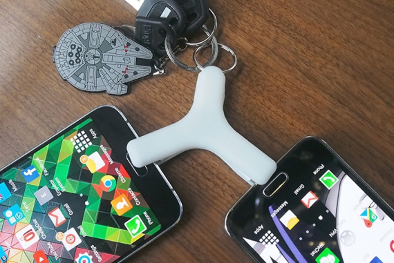 Pwr Mate представляет собой брелок с двумя Micro-B USB штекерами. С его помощью можно соединить два Android-смартфона с функцией On-The-Go и зарядить один из них от аккумулятора другого.