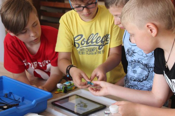 "Один набор рассчитан на 2 ребенка. У нас занимаются 3-4. В резервном списке 80 детей, – рассказывает Елена, – Занятия проходят в виде соревнования в двух командах. Например, дети собирали гоночную машину и соревновались на скорость. Каждый ребенок в порядке очереди работает с набором".