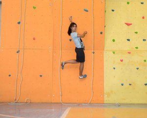 "У нас скалолазание идут детки с 4-5 лет. Но с большой группой трудно работать, поэтому лучше с 6 лет. У меня дочке семь, лазит понемногу с двух лет. Сыну 2,5 года. Уже понемногу пробует в этом свои силы. У нас есть специальные детские страховочные системы. Поэтому детки могут и в три года попробовать".