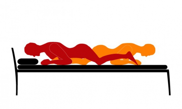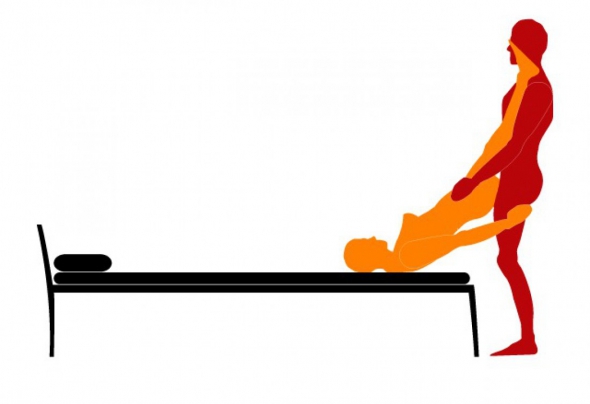 Третья позиция несет в себе реальную угрозу для жизни партнерши, так как в этом случае упор идет на шейный отдел позвоночника. При этом в данной позе есть потенциал для глубокого проникновения, и если приноровиться, то может быть очень даже весело. Но шею тренировать все равно придется.