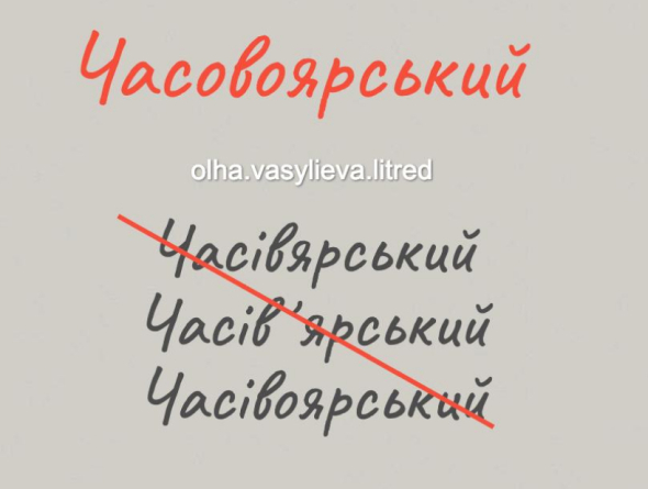 "Часівярський - было бы, если бы название города было "Часівяр", а не состояло из двух слов. Однако без апострофа произнести невозможно. Напомню, что апостроф пишем перед я, ю, есть, е после б, п, в, м, ф. Поэтому и Вячеслав, потому что такое написание имени закреплено действующим правописанием и так было в правописании 1993 года", - объясняет Ольга Васильева.