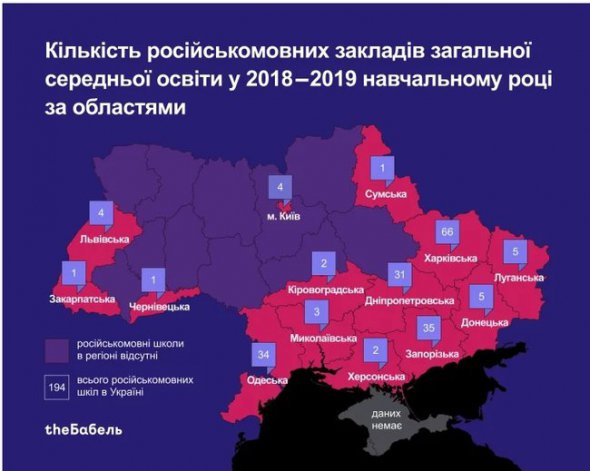 В Украине насчитывается 194 средних школ с русским языком обучения. 43 из них частные.