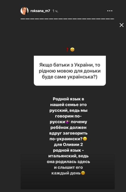 "Родной язык в нашей семье русский, ведь мы говорим на русском. Почему ребенок вдруг должен заговорить на украинском? Для Оливии второй родной язык итальянский, ведь она родилась здесь и слышит его каждый день", - написала она.