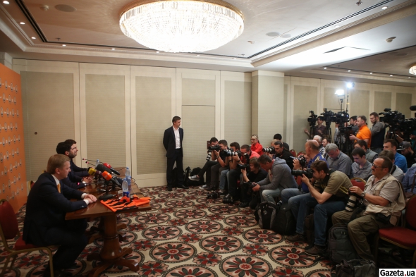 Ряд камер был длиннее, чем стол для участников пресс-конференции, а ажиотаж среди журналистов даже больше, чем во время объявления расширенной заявки сборной Украины на Евро-2016.