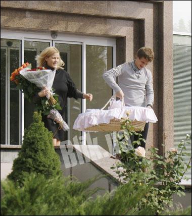Сделав несколько снимков на память и приняв поздравления и цветы от друзей, которые приехали на выписку, молодые родители аккуратненько поставили корзинку в авто и уехали. Напомним, что у Тани от первого брака уже есть сын Виталик (11 лет), а для Саши Алиева – это первенец.