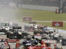 На старте гонки Фелипе Масса врезался в Дэниэла Риккардо, сломав себе переднее антикрыло, обломки от которого усеяли трассу в первом повороте. Тем не менее, дирекция Гран-при Германии не стала выпускать автомобиль безопасности. Спустя несколько кругов по одному из обломков проехал Льюис Хэмилтон, проколов себе заднее колесо. Британец смог продолжить заезд в глубине пелотона, пока на 58 круге не заехал в боксы – в итоге чемпион 2008 года оказался единственным пилотом, сошедшим с дистанции.