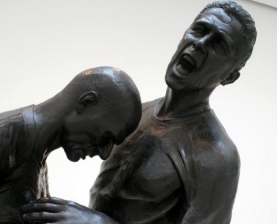 Американский художник-концептуалист Адель Абдессемед создала скульптуру, которая повторяет знаменитый удар француза Зинедина Зидана головой в грудь итальянца Марко Матерацци во время финала Чемпионата мира 2006 года в Германии.
