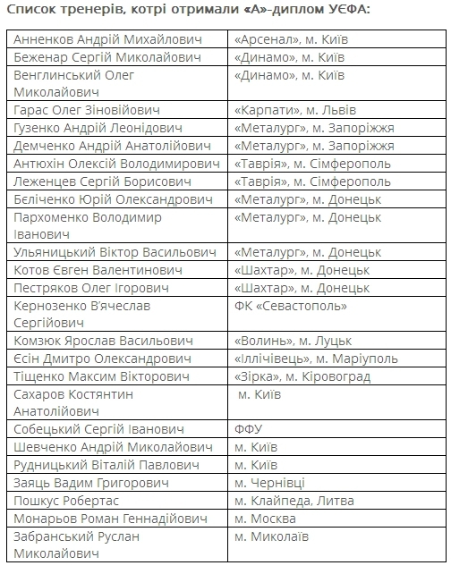 Следующим шагом для тренеров станет работа над получением "PRO"-диплома УЕФА.