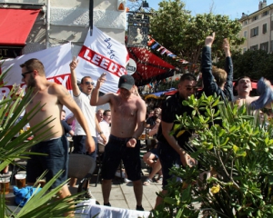 Около полуночи британские фанаты, многие из которых находились в состоянии алкогольного опьянения, затеяли драку с местными жителями, круша расположенные рядом рестораны и бары.