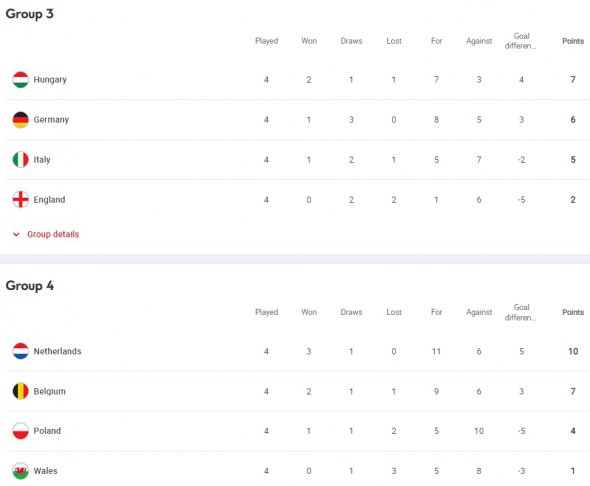 Англичане занимают последнее место в группе, набрав всего два очка, и рискуют вылететь из Лиги A.