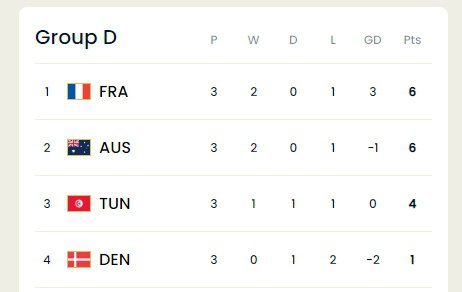 Франция, гарантировавшая уже себе выход в плей-офф, встречалась с Тунисом, а Австралия – с Данией.