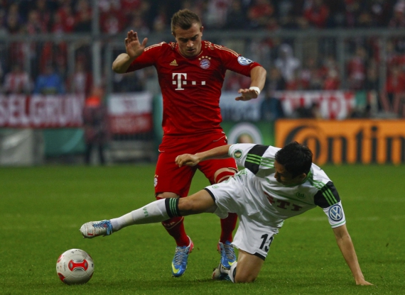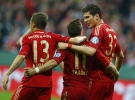 Встреча, прошедшая во вторник в Мюнхене, завершилась со счетом 6:1. По голу у победителей забили Марио Манджукич (17-я минута), Арьен Роббен (35-я) и Джердан Шачири (51-я), а Марио Гомес, вышедший на замену на 77-й минуте, оформил хет-трик (80-я, 83-я, 86-я). "Вольфсбург" ответил единственным точным ударом Диего (45-я).