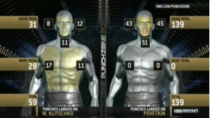 Американский телеканал HBO расшифровал статистику ударов. Владимир Кличко нанес Александру Поветкину больше чем в два раза точных ударов, причем все они пришлись на голову российского боксера. на 139 ударов украинца соперник ответил 59 точными попаданиями. Из них в голову пришлось всего 31 удар - то есть в четыре раза меньше, чем получил сам Поветкин.