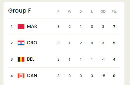 Хорватия набрала пять и удержалась на второй строчке, а выиграла квартет сенсационно сборная Марокко, набрав семь баллов после победы над Канадой 2:1.