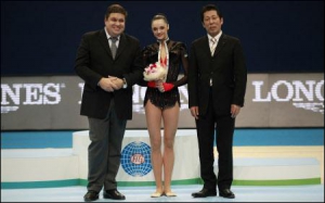 Украинская гимнастка Анна Бессонова была удостоена премией спонсора чемпионата мира фирмой Longines за самое элегантное выступление.