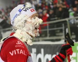 Юбиляр Халвард Ханеволд гонку провел из рук вон плохо: шесть промахов отправили его далеко в глубину финишного списка, зато после финиша получил довольно оригинальное поздравление от друзей, окунувших его лицом в праздничный торт.