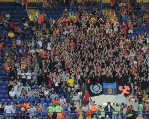 Сразу же после завершения встречи "Шахтера" и "Черноморца" на поле ОСК "Металлист" прорвались болельщики обоих коллективов. Около тысячи фанов донецкого гранда попали на газон со стороны Северной трибуны, а со стороны Южной сумели просочиться около 300 болельщиков "Черноморца". Остальных желающих попасть на поле сдержали стюарты.