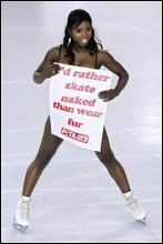 Французская фигуристка Сурья Бонали, 33 года, вышла голой на лёд катка Аньер в рамках акции защиты детёнышей тюленей на севере Канады, сообщает "Корреспондент".