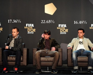 Напомним, за Месси свои голоса отдали 22,65% респондентов, в роли которых выступали тренеры, капитаны национальных команд и журналисты. Иньеста финишировал вторым с результатом 17,36% голосов, Хави - третьим (16,48%).