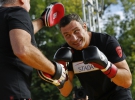 В московском парке "Красная Пресня" прошла открытая тренировка 11-кратного чемпиона мира в супертяжелом весе по версии WBC Виталия Кличко и немца Мануэля Чара.
