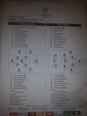 "Наполи": Рейна, Хюсай, Аллан, Кальехон, Жоржиньо, Мертенс, Гамшик (К), Кулибали, Гулям, Альбиоль, Милик.