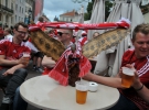 13 июня во Львов прибыло более 4 тысяч фанатов из Дании. Наиболее ярые сторонники сборной собрались в открытом кафе на центральной площади Рынок. Около двух сотен фанатов завесили все флагами своей страны. Все они в национальной атрибутике. В большинстве лица раскрашены в бело-красные цвета.