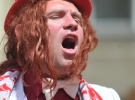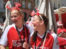 Многие львовяне фотографируются с фанатами Дании. Больше всего их привлекают шлемы с рогами и разрисованные лица датчан.