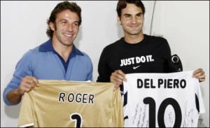 Игрок туринского "Ювентуса", прибывший на встречу с первой ракеткой мира в компании жены Сони и брата Стефано, подарил Федереру две футболки. Одна из них - игровая майка "Ювентуса" с номером 10 и фамилией Дель Пьеро, на которой ее обладатель поставил автограф, а вторая - золотого цвета с номером 1 на спине и надписью Roger. Дель Пьеро также предложил теннисисту еще пару своих бутс с репликой "они не пахнут", но принял Федерер презент или нет, неизвестно.