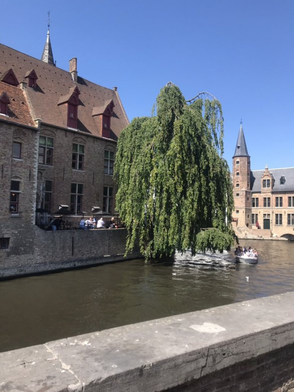 В средние века город был очень богатым. Горожане обрабатывали английскую шерсть. Брюгге называют бельгийской Венецией - здесь три канала и 54 моста. Это очень красиво - каналы, дома, рестораны, мосты.
