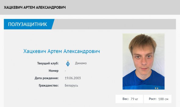 Киевское "Динамо" заявило 17-летнего Артема Хацкевича на следующий сезон УПЛ.