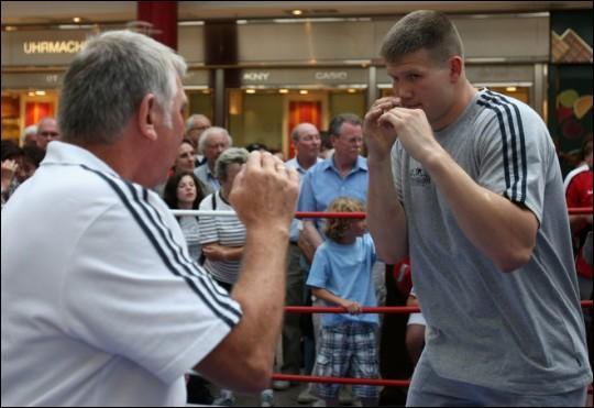 Украинский супертяжеловес Александр Дмитренко провел открытую тренировку в преддверии боя с американцем Эдди Чэмберсом, победитель которого станет официальным претендентом на титул чемпиона мира по версии WBO Владимира Кличко.