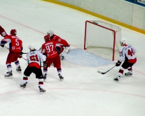 Шайбы: Ердаков (Ахметов), 02:20 (1:0). Варламов (Кочетков), 06:16 (1:1). Журун (Малевич), 29:35-бол. 5X3 (1:2). Кручинин, 30:25 (2:2). Мисюль (Ахметов, Ердаков), 32:55 (3:2). Пискунов (Селезнёв, Белухин), 51:49 (3:3).
