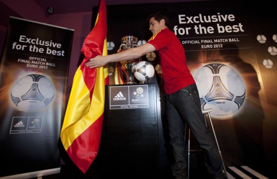 На специальной церемонии в Мадриде капитан и голкипер сборной Испании Икер Касильяс представил официальный мяч финала Евро-2012 - adidas Tango Finale 12.