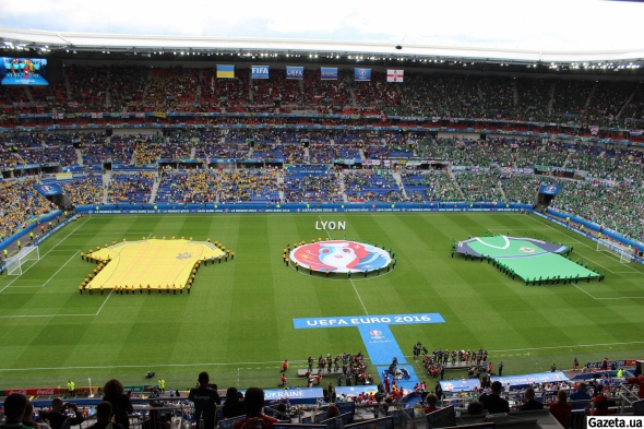 Наконец прозвучал гимн Украины, трибуны в исполнении принимали самое активное участие