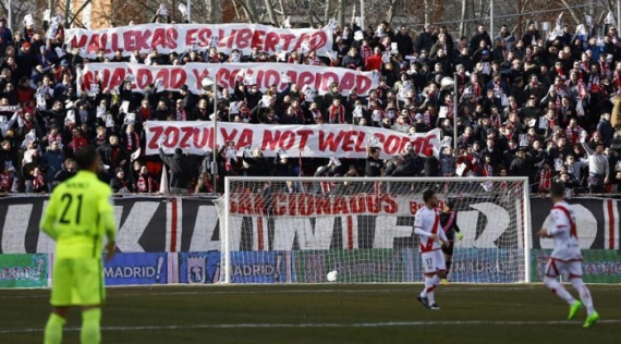 Активные болельщики "Райо Вальекано" на сегодняшнем домашнем матче Сегунды против "Альмерии" (1:0) продолжили свои акции протеста.
