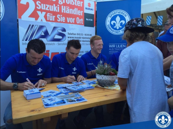 Артем Федецкий, Денис Олейник и Игорь Березовский, выступающие за "Дармштадт", поучаствовали в автограф-сессии немецкого клуба.