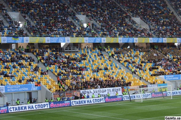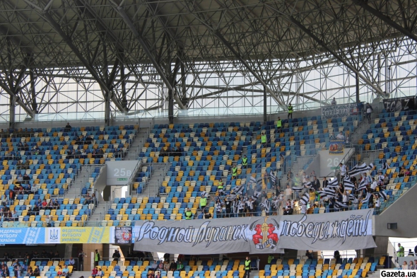 Фан-сектора "Шахтера" и "Зари" устроили перекличку "Луганск" - "Донецк" и "Одна единая соборная Украина"
