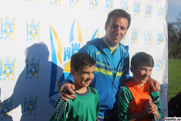 "Хотим передать детям ценности футбола. Прежде всего - это командная игра, уважение к сопернику и к арбитрам", - обращается 41-летний Иван Перес к присутствующих.