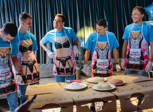 Футболисты "Шахтера" лепили пельмени в эротических фартуках