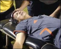 Полиции пока не удалось задержать человека, попавшего камнем в голову Кальдерона. Информации о состоянии здоровья бокового арбитра нет.