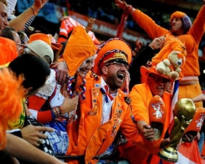 Большинство голландцев живут в просторных военных палатках. В каждой помещаются 4 одноместных деревянных кровати. Также есть несколько десятков двухместных палаток - они оранжевые, а вход стилизован под львиную пасть. Изображение льва - талисмана сборной - встречаются повсюду: на футболках, капотах легкивок. Многие голландцев надели львиный хвост, разрисовали "под пасть" лицо.