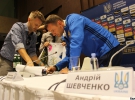 Перед тренировкой наставник сборной Украины Андрей Шевченко вместе с Тарасом Степаненко провели пресс-конференцию. Шевченко сразу сообщил, что Виктор Цыганков не сможет помочь команде из-за повреждения. А на его место вызовут Александра Караваева с луганской "Зари".