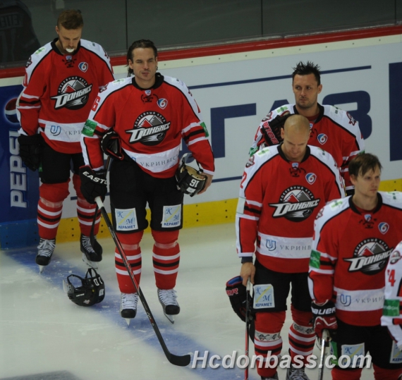 "Донбасс": 50.Лацо. 77.Пиганович - 27.Коларж, 92.Лайне - 15.Виртанен - 10.Петтерссон. 5.Уилсон - 37.Подхрадски, 63.Дадонов - 34.Белухин - 28.Якуценя. 7.Бартулис - 51.Разин, 11.Кагарлицкий - 16.Робитайл - 22.Кашпар. 4.Сильницкий, 24.Благой - 44.Варламов - 93.Шалимов.