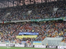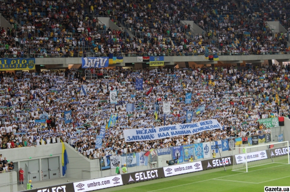 В матче за Суперкубок Украины, в котором донецкий "Шахтер" со счетом 2:0 победил киевское "Динамо", фанаты вывесили несколько патриотических баннеров. Игра прошла 22 июля во Львове.