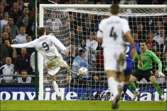 Еще через восемь минут англичане сравняли счет, когда Питер Крауч получил своевременный пас от Бекхэма и ударом с близкого расстояния послал мяч в ворота Стипе Плетикосы. Счет 2:2 устраивал сборную Англии, так как в этом случае при равенстве очков с российской командой, англичане получали бы преимущество за счет лучшей разницы мячей в личных встречах.
