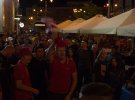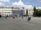 Нечто подобное пришлось наблюдать на Контрактовой площади, которая была заполнена до отказа. Хитрецы не захотели сновигатися в толпе, взяли и залезли на историческую достопримечательность - Гостиный двор. Правильно, оттуда же прекрасно все видно. Даром, что этой постройке сотни лет и предыдущая власть всячески пыталась ее уничтожить. Это же просто футбол.